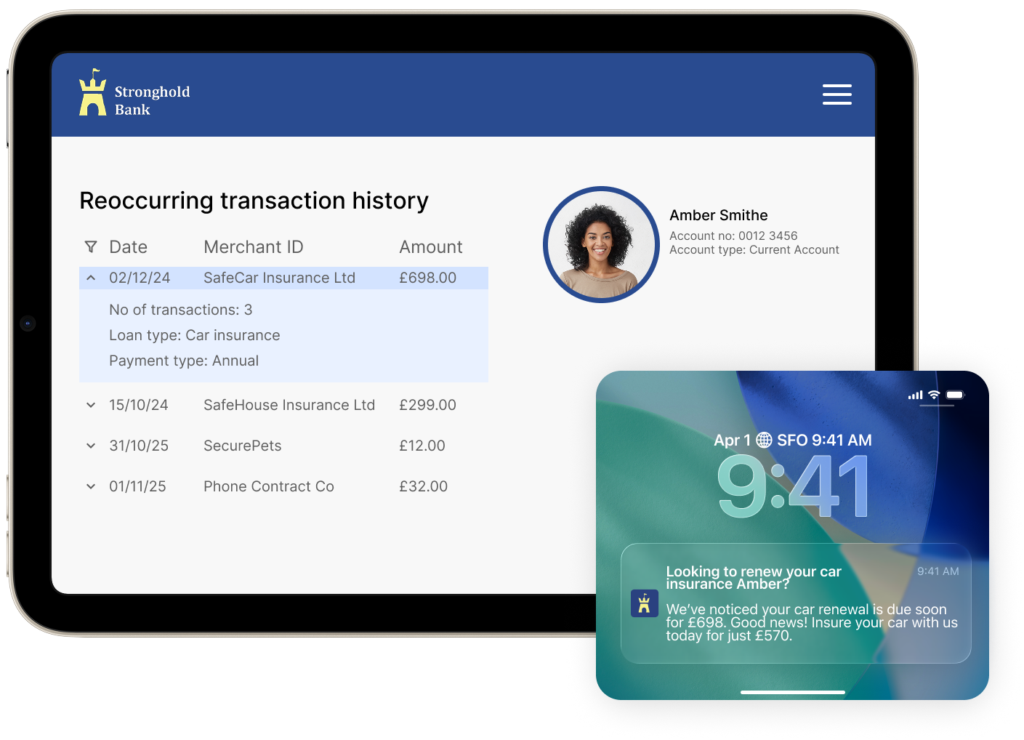 One example that Moneyhub powers for its customers is in the insurance space. When providers have the ability to identify merchants accurately, they can spot which customers have taken out policies with their competitors.